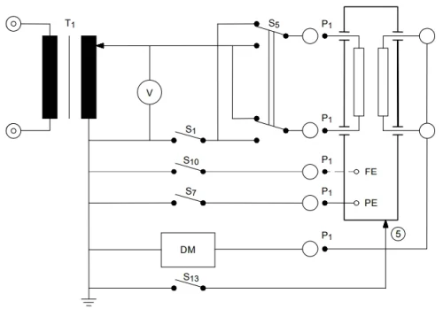 Os equipamentos de ensaio de corrente de fuga são equipamentos com capacidade de medir a corrente da forma estabelecida pela norma em questão e também proporcionar as diferentes situações de medida exigidas por norma.